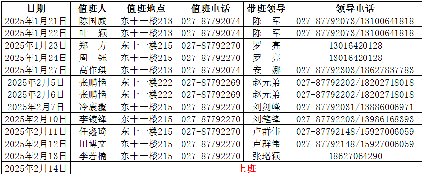 1、值班时间:上午8:30—11:30,下午2:30—5:00;