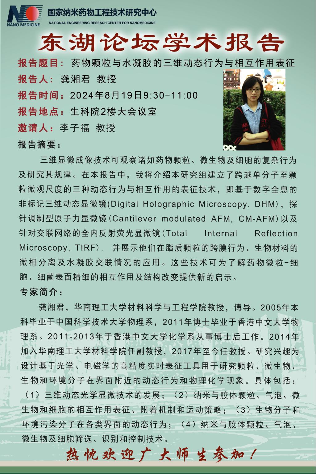报告题目:药物颗粒与水凝胶的三维动态行为与相互作用表征