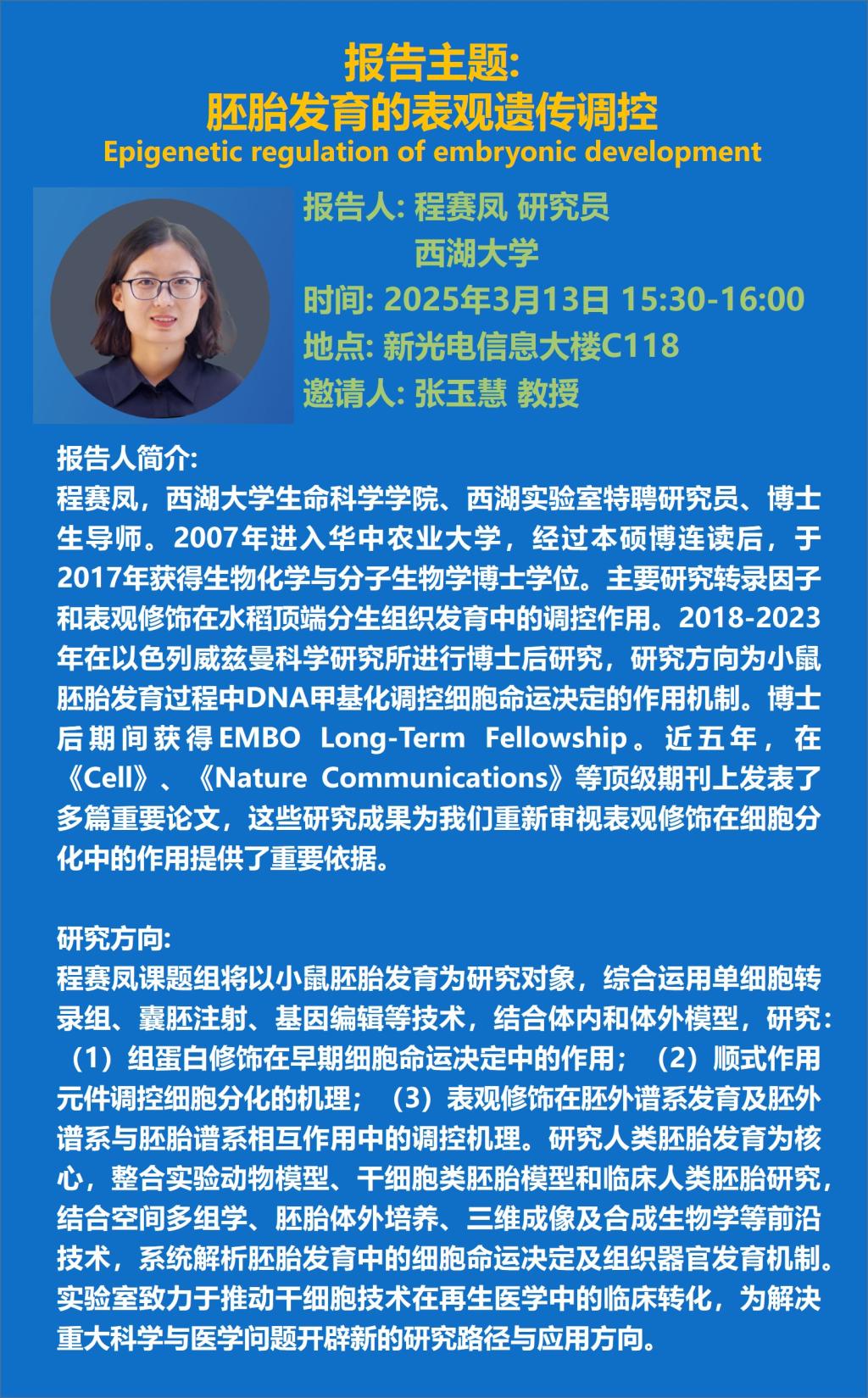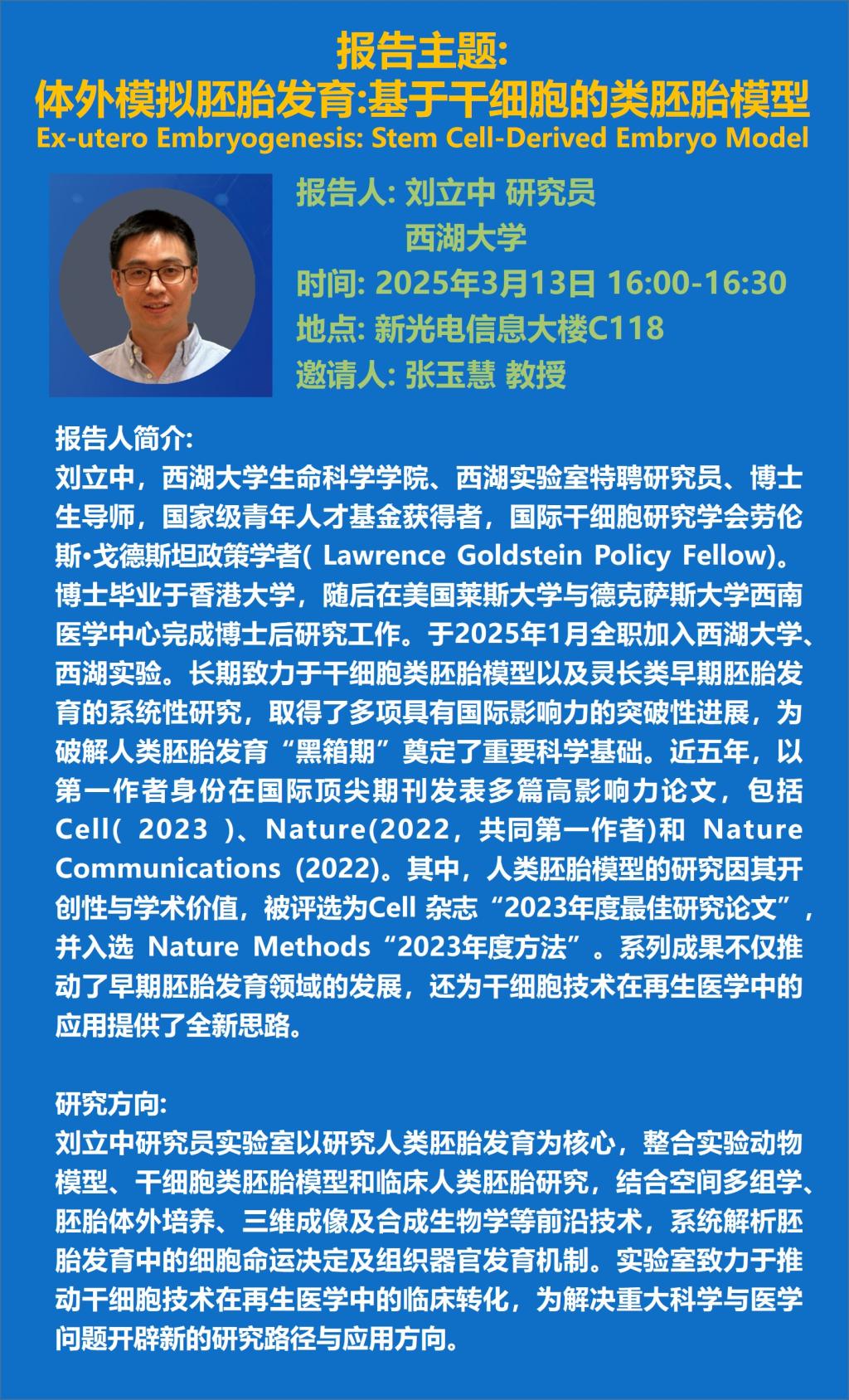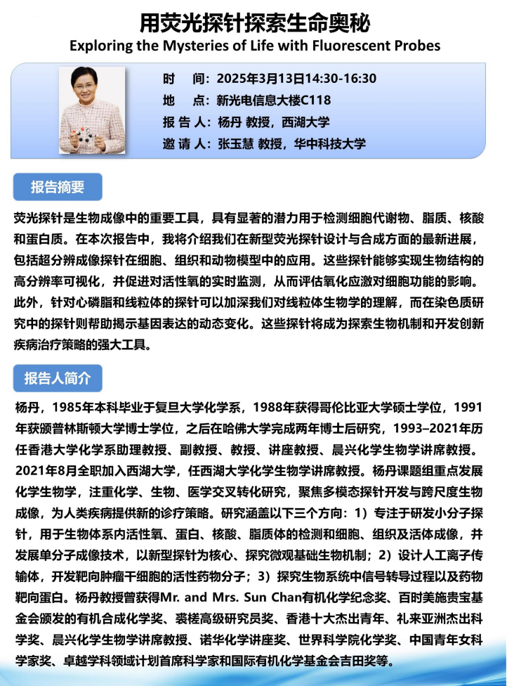 报告人: 杨丹 教授,西湖大学