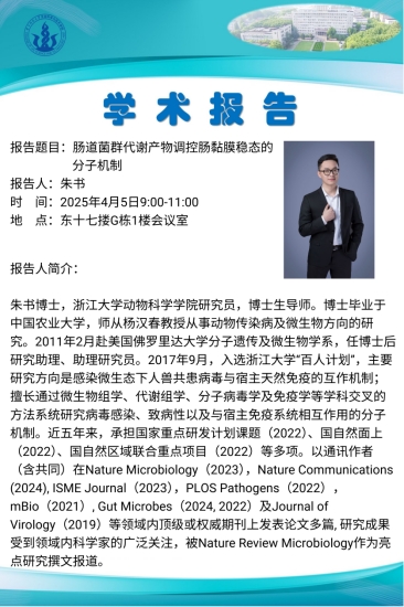 报告题目:肠道菌群代谢产物调控肠黏膜稳态的分子机制