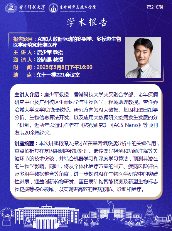 【东湖生命论坛218期】AI和大数据驱动的多组学、多模态生物医学研究和精准医疗