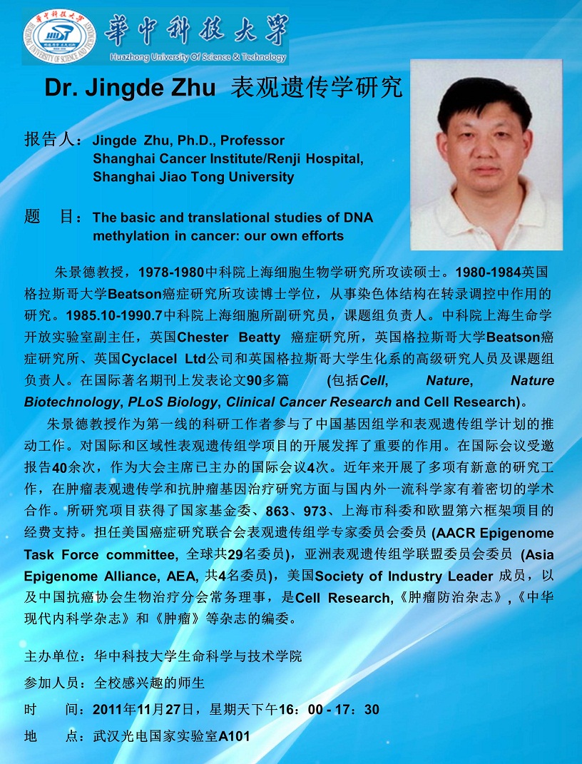 学术讲座_The basic and translational studies of DNA methylation in cancer: our own efforts
