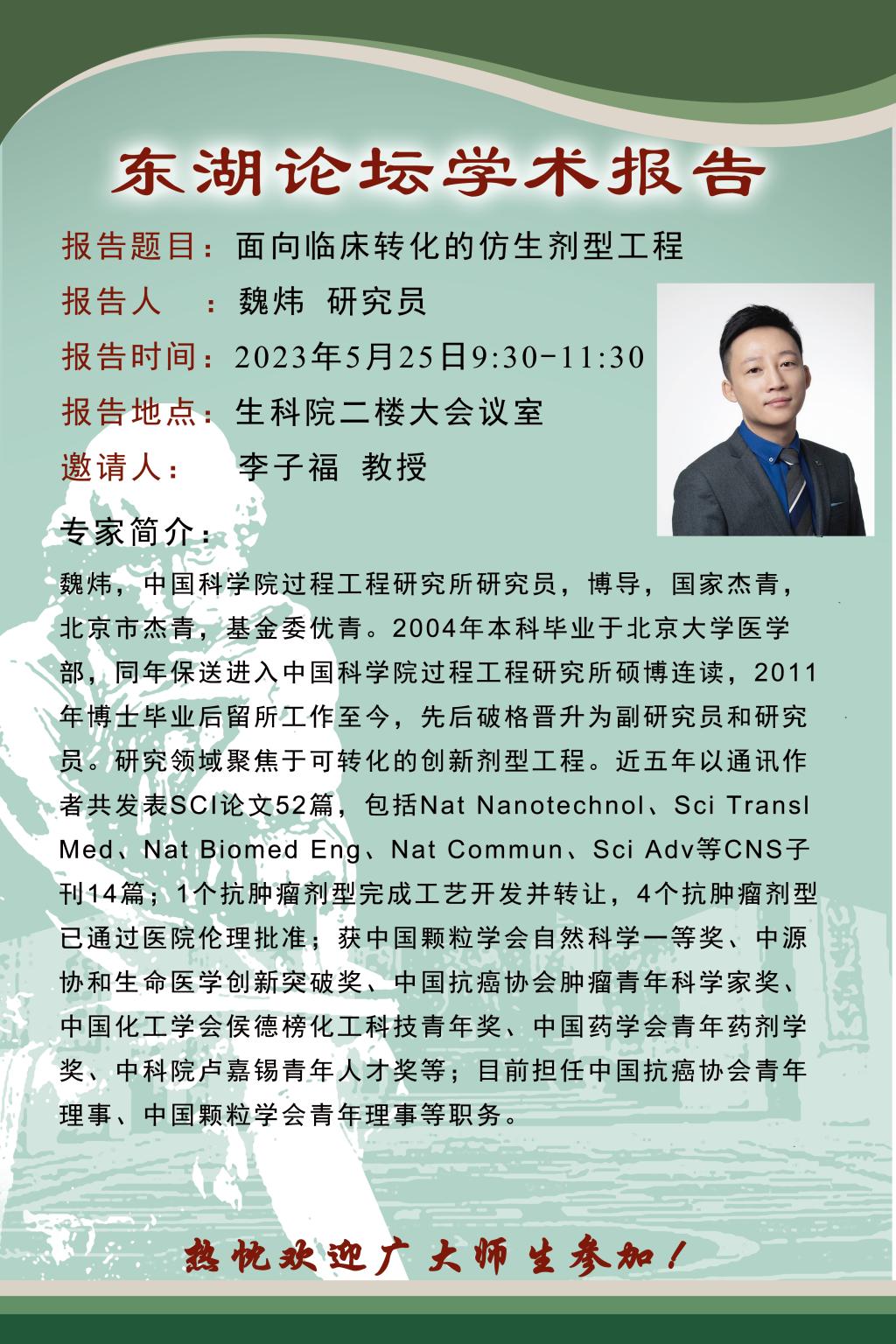 报告题目:面向临床转化的仿生剂型工程
