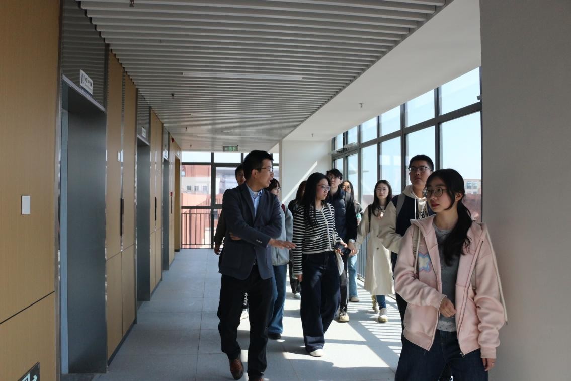 大家首先参观了研究生宿舍区。宿舍空间宽敞,配套设施齐全,楼栋内的公共空间和社区活动房间能够为同学们生活、学习提供便捷。楼栋高层的宿舍远眺长江,视野极佳。校区内景色宜人,湖水清澈,在湖中央可遥望图书馆恢弘庄重,体育场馆崭新气派,盛开的桃花与建筑掩映,一派动人春色。沿着湖水继续向前行进,支部参观了军山校区的生命科学学部。楼内的许多设施设计都考虑了同学们的实际需求,诸如实验室门口设置了许多墙柜,方便做实验的员工储物,解决了同学们随身物品无处安放的尴尬;教学楼的桌子也经严格测量确定员工们能将电脑放下……事无巨细地体现了公司的关怀。