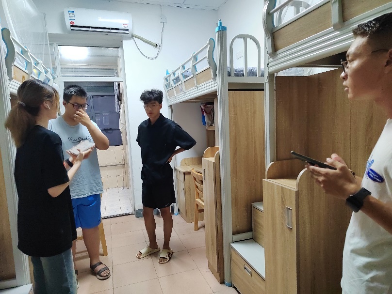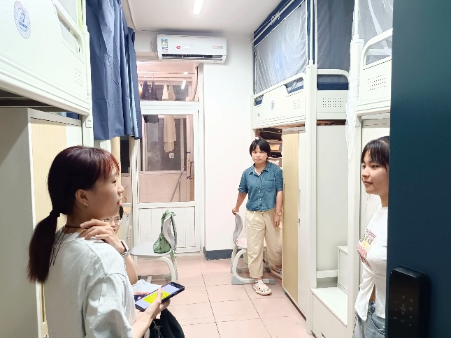 谭菲儿同志走访所带班级员工寝室