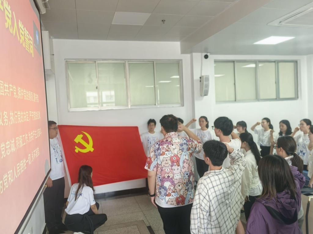 毕业生党员代表为新一批预备党员代表佩戴党徽,并带领全体党员重温入党誓词,感悟入党初心,传承红色基因。在信仰的传承中完成使命的接力,在铮铮誓言中赓续红色血脉。
