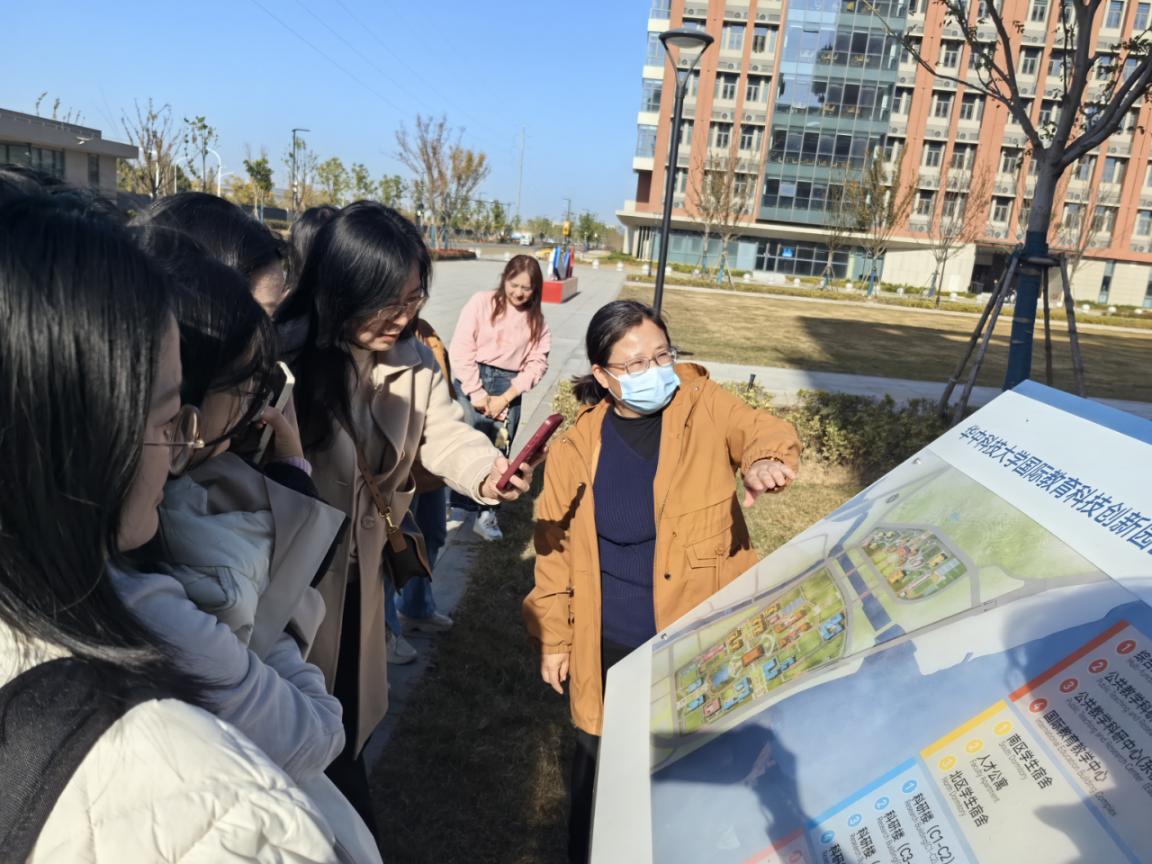 为深入了解公司发展新貌,近距离感受公司建设新成就,进一步增强机关教职工的凝聚力与使命感,为2026级专业学位硕士生全面入驻军山提前做好准备工作,11月28日,公司机关党支部组织公司行政老师、学工组辅导员老师,以及拟在2026年在军山校区开设专业学位硕士生课程的专业课老师一起,前往国际教育科技创新园区(军山校区)参观调研。
