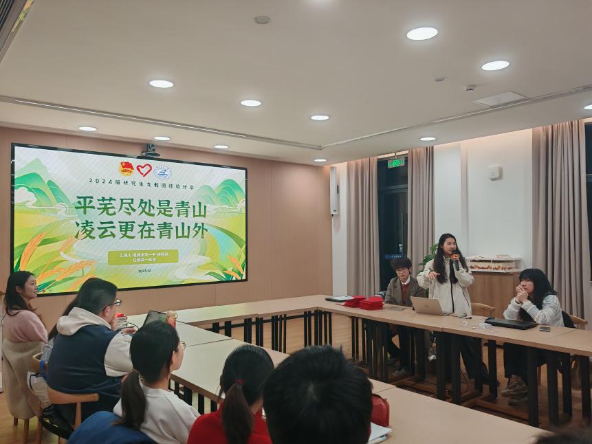 聆听榜样奋斗故事,激发青年使命担当。同济医公司研究生支教团成员杨燕语以“平芜尽处是青山,凌云更在青山外”为主题,分享了她在湖北恩施来凤担任高中英语老师的支教经历。她详细讲述了加入研究生支教团的初衷,毫无保留地分享了申请经验,并感慨道:“选择支教,就是选择到党、祖国和人民最需要的地方去贡献自己的力量。”杨燕语同志的亲身经历与真挚感悟,为支部低年级党员指明了前进方向,激励着大家将个人发展与国家需求紧密结合,在青春赛道上勇担使命、奋勇争先。