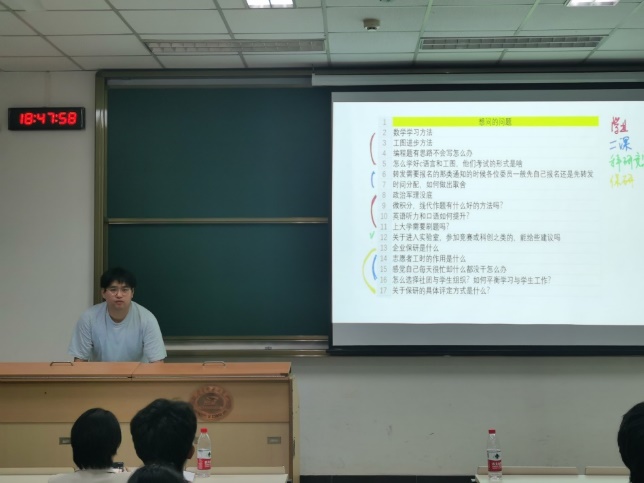 学期伊始、万象更新,23级生卓新同学刚刚迈入大公司园,期待与困惑共存。沈瑞同志针对前期收集的23级生卓同学的问题进行解答。沈瑞结合自己大一的学习经验,在解答问题的同时,还分享了自己对于学习和学习方法的观点,他认为,大学的学习主要是通识教育而非应试教育,应该把学习的重心重点放在知识而非考试上,对待知识应该理解并吸收,而非单纯训练做题。沈瑞鼓励大家积极勇敢的从高中的学习思维和学习习惯中跳出来,早日适应老员工活。