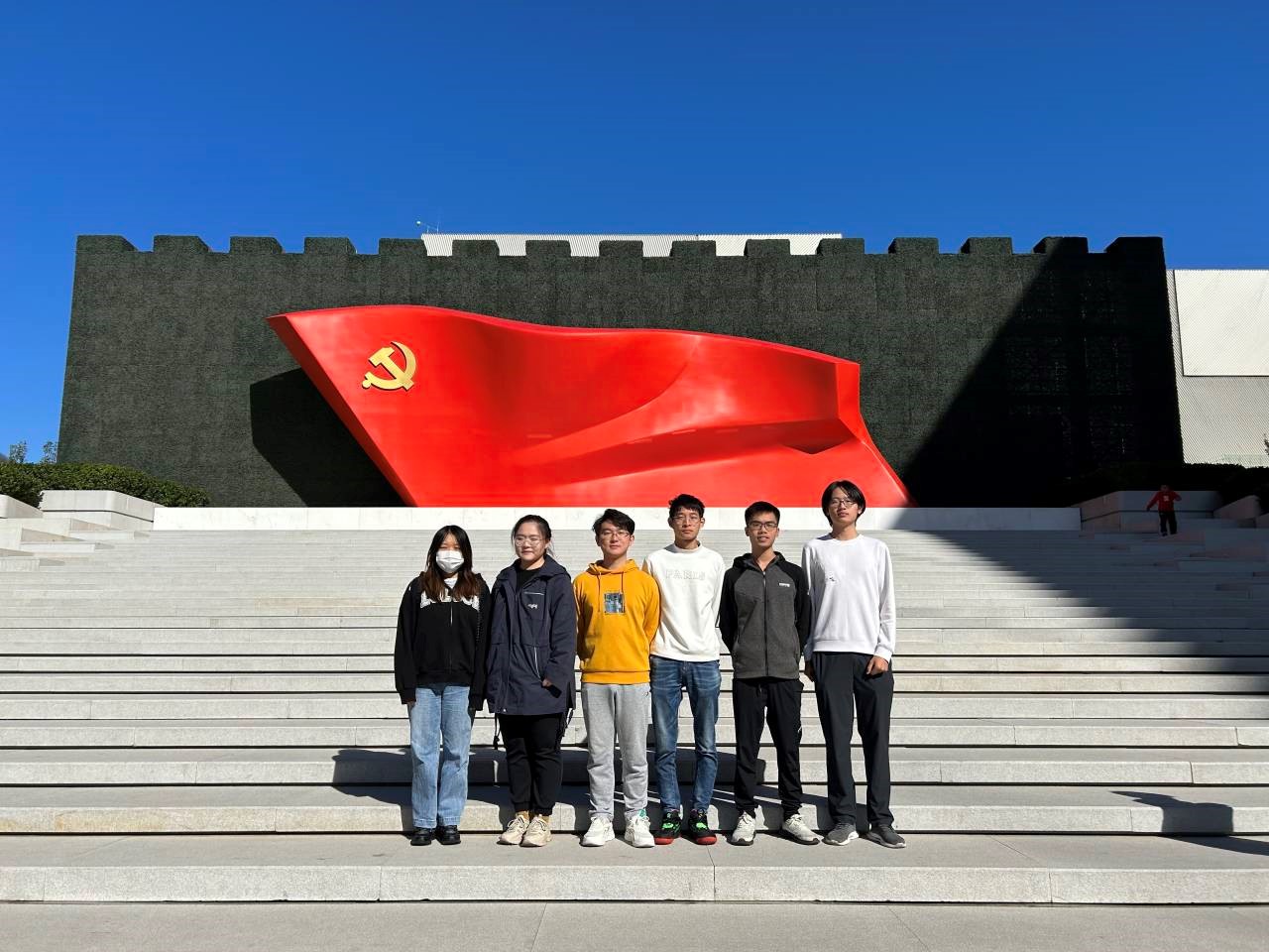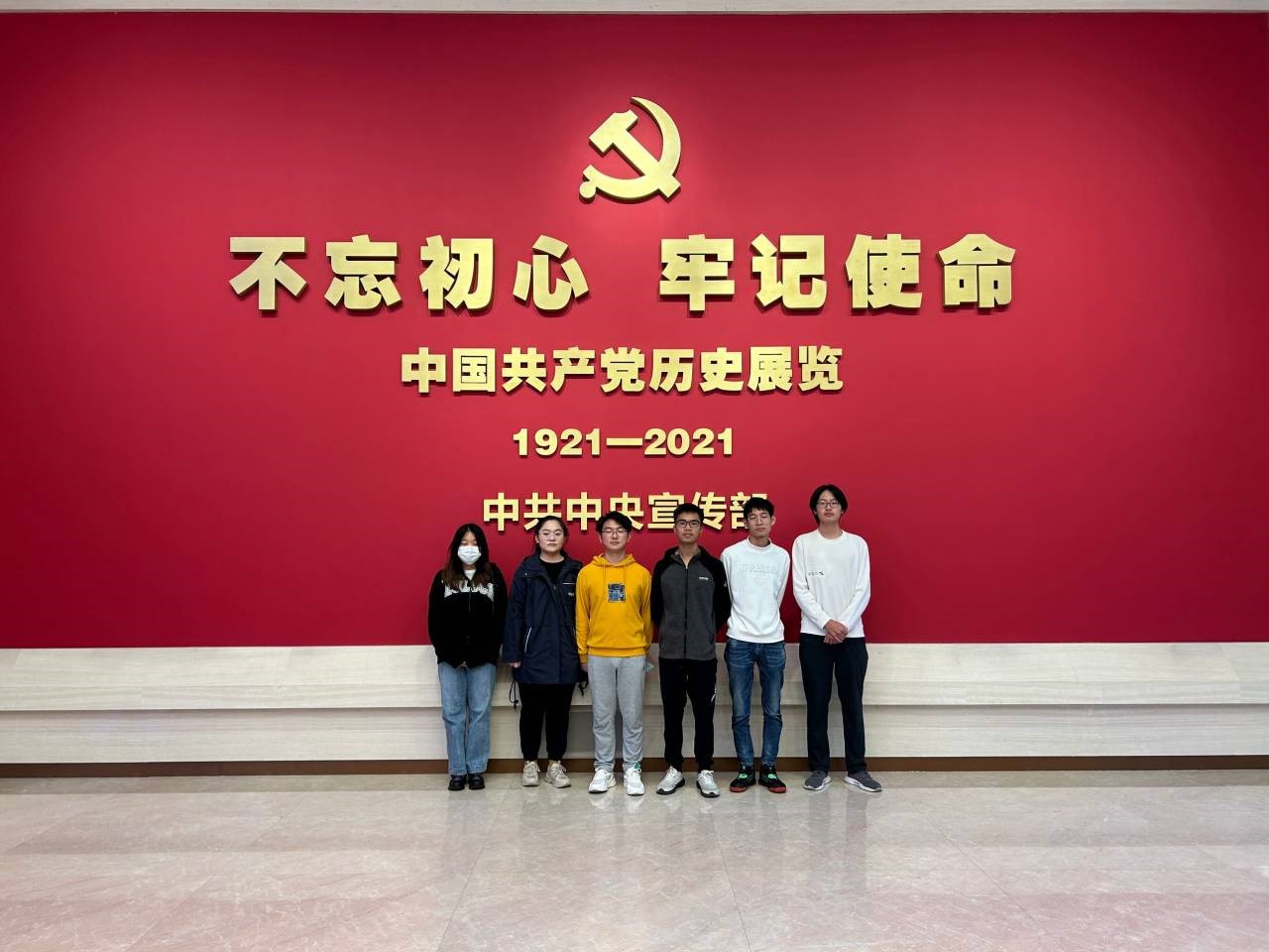 十月的北京,秋高气爽。支部成员们首先在入口处的党旗下拍摄合影。不忘初心,牢记使命是中国共产党历史展览的主题。预备党员李衡泽同志首先回顾了他的入党初心。“我的入党初心是为了在加入中国共产党后成为一个更好的青年,我觉得我们中国共产党的思想路线和理论道路是现今最先进最具有活力的。”他说道,“成为一名中国共产党党员,向过去的优秀党员同志学习,在高深充满智慧的理论中汲取营养,我希望能够以党员的身份要求自己,从而成为一个更好的自己。此外,我希望能够将自己未来的事业方向与国家的需要结合,与人民的呼声结合,从而实现更好的人生价值!”