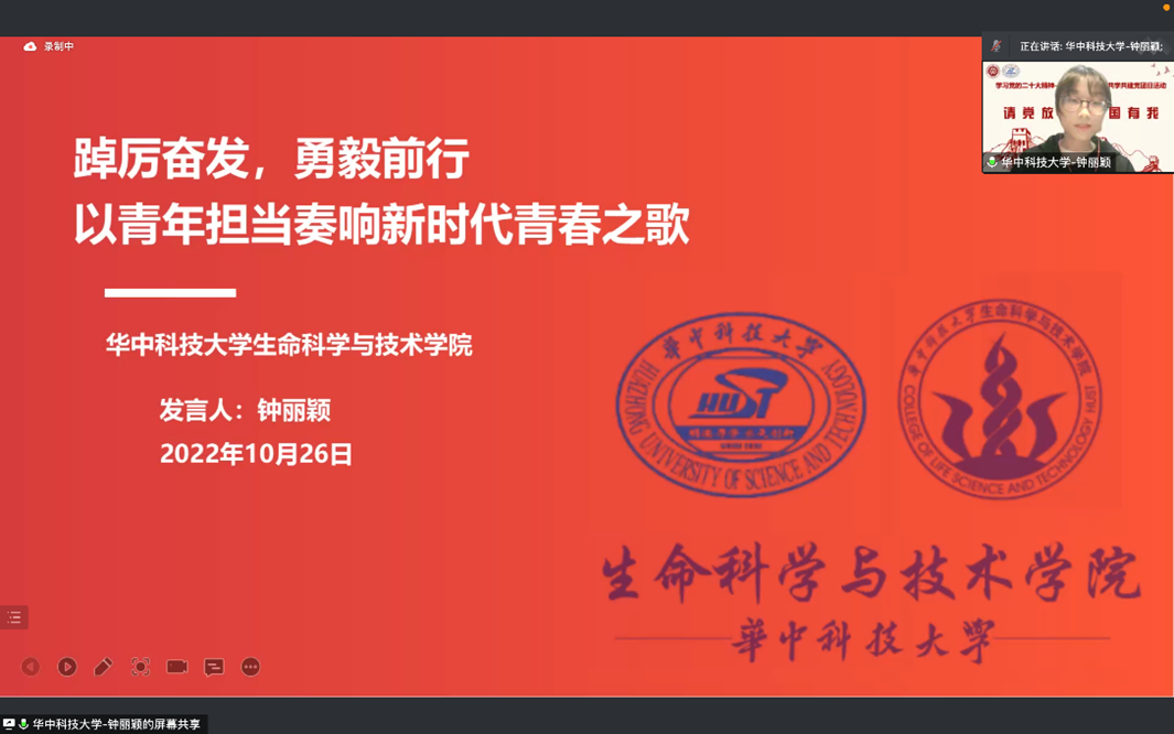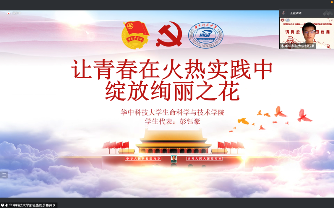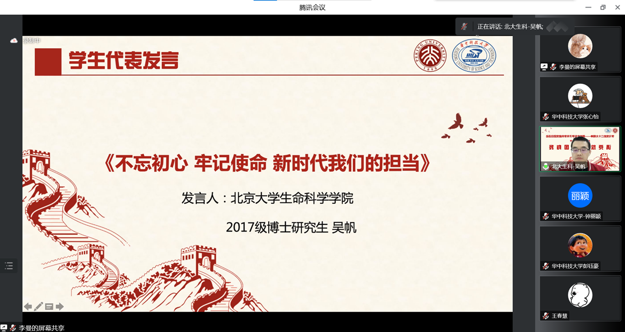 10月26日晚,必威西汉姆联官网与北京老员工命科学公司联合举办“请党放心,强国有我”线上共学共建党团日活动。华中科技老员工命科学与技术公司党委书记刘笔锋,党委副书记占艺,团委书记闫颢芯,团委副书记彭一鸣;北京老员工命科学公司党委书记石长翼,党委副书记唐平,团委书记谢夏青,2017级研究生班主任李湘盈,以及两院青年员工代表共同参加了本次活动。