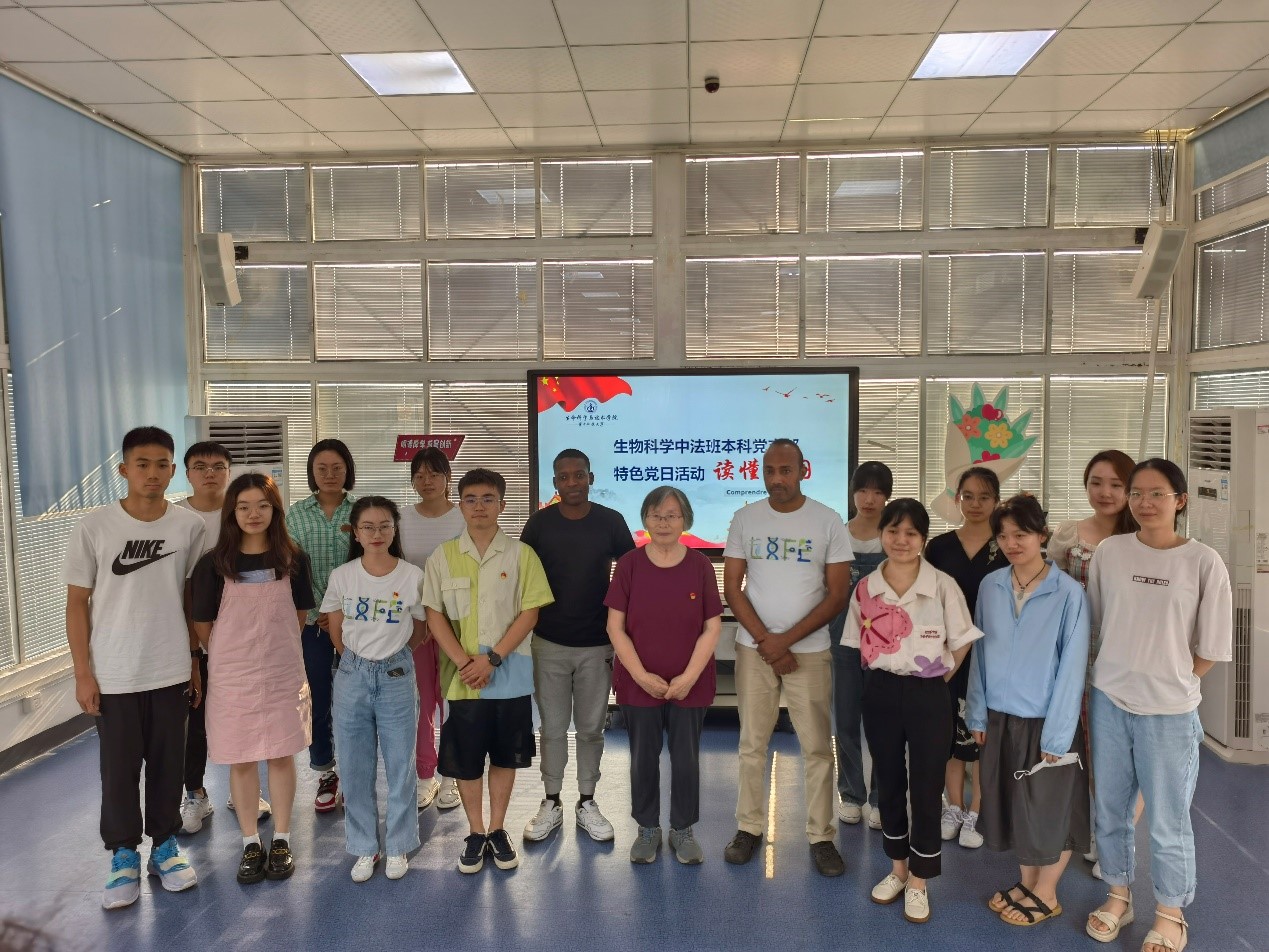 7月8日下午,生物科学中法班本科党支部在东十一楼九楼阳光房开展中外交流活动,关工委委员、​必威西汉姆联官网退休教师刘曼西教授、生物科学中法班本科党支部师生党员、生物科学系研究生第二党支部成员、国际员工代表参加,生物科学中法班本科党支部书记周钰主持。