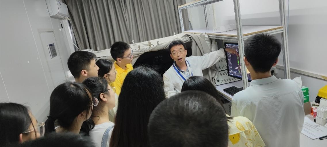 在雷敏老师的带领下,支部成员一同走进公司科研共享平台。雷老师依次介绍平台原子力显微镜、共聚焦显微镜、分析型超速离心机、台式离心机、高分辨串联质谱仪、串联飞行时间质谱仪等各类大型实验仪器设备。刘斌老师为大家重点讲解了超高速多光子显微镜成像系统的使用方法、检测原理以及技术优势。他还以观察小鼠大脑以及斑马鱼尾部结构为例,为大家生动展示了如何在不伤害组织的情况下观察到活体荧光成像结果。