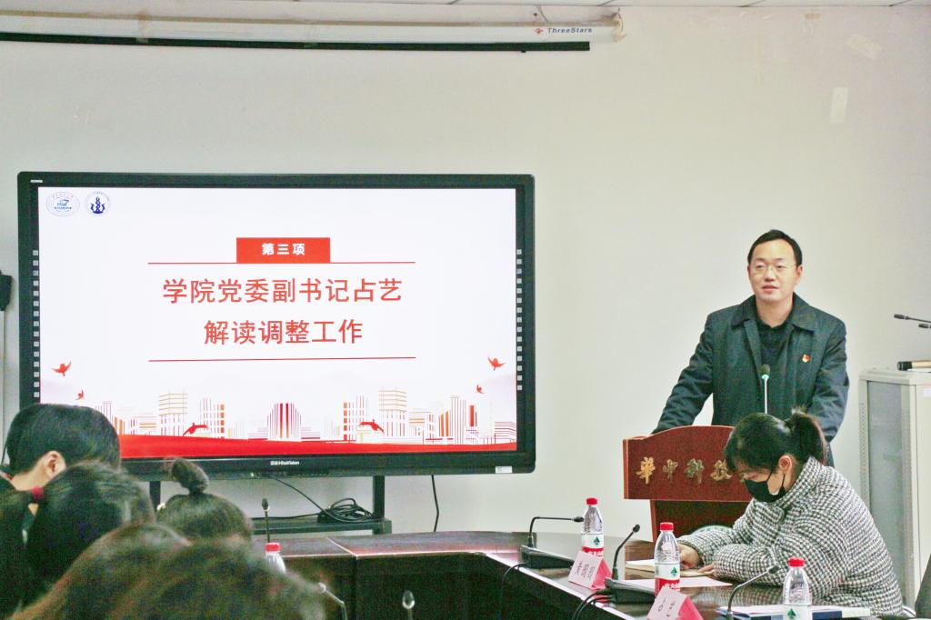 党委副书记占艺对本科生党支部调整工作进行了深入解读,阐释了进行本科生党支部调整的三个重要意义,即夯实本科生思政工作的党支部战斗堡垒作用;推动教工、研究生、本科生支部依托学科专业,充分展开联系共建;深入推进辅导员队伍“三个融合”实践,打造纵横交错的大思政工作格局。同时对公司纵向本科党支部和新任支部书记提出殷切希望,鼓励同志们抓好契机,为​必威西汉姆联官网立德树人工作再上新台阶贡献智慧和力量。