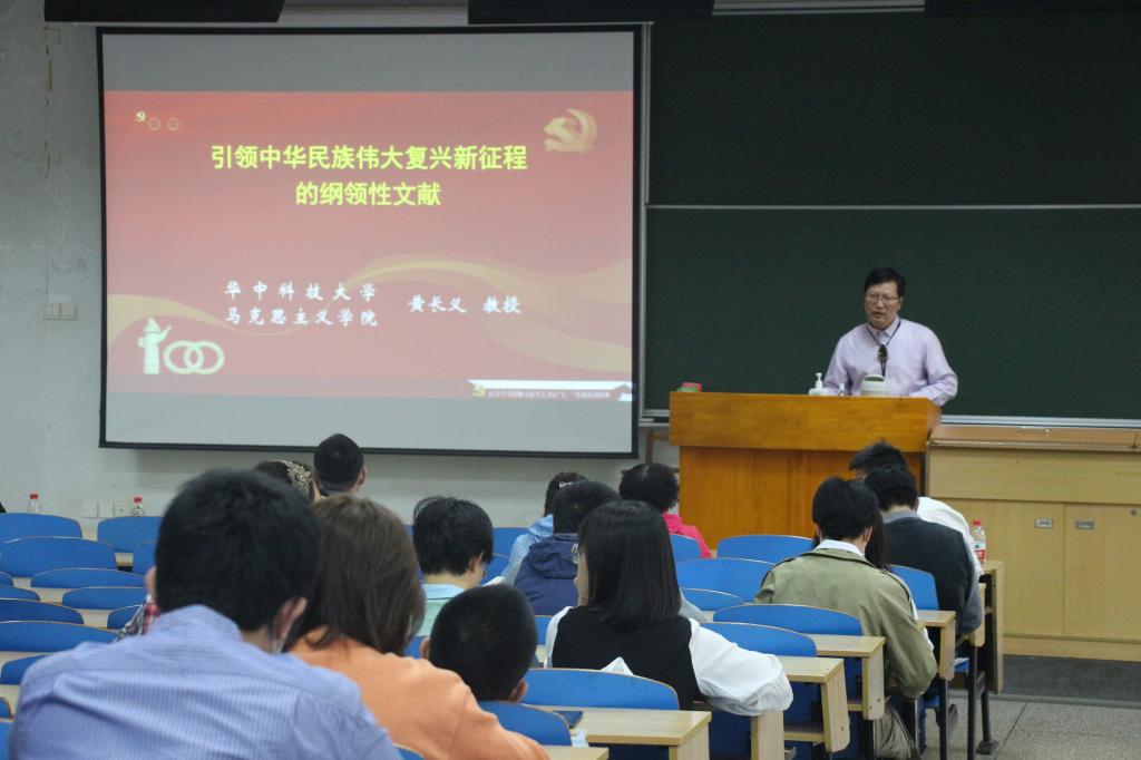 随后,校宣讲团黄长义教授宣讲了习近平总书记“七一”重要讲话精神。黄教授以“引领中华民族伟大复兴新征程的纲领性文献”为题,从实现中华民族伟大复兴这“一个主题”、中华民族伟大复兴百年贡献的“四个伟大成就”、实现中华民族伟大复兴的强大精神动力之“伟大建党精神”、实现伟大复兴的根本遵循之“九个必须”、开启伟大复兴新征程之“新的赶考之路”五个方面进行了详细讲述。黄教授指出,习近平总书记重要讲话闪耀着马克思主义真理的光芒,是党的重要理论创新成果,是党团结带领中国人民以史为鉴、开创未来的行动指南,具有极为重要的政治意义、历史意义和现实意义。指导我们从党的光辉历史中汲取奋进力量,在练就过硬本领中担当时代重任,在拼搏奋斗中开创美好未来。会后部分同学和老师就相关内容与黄教授进行了亲切交流。
