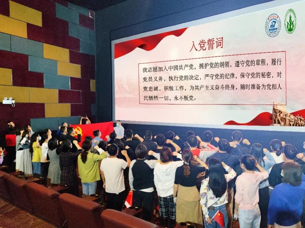 我宣誓:“我志愿加入中国共产党……”,由教工党支部书记付春华教授带领全体党员在党旗下庄严宣誓,重温入党誓词。随后,大家有序就坐,认真观看红色电影《长津湖》。电影《长津湖》以抗美援朝战争第二次战役中的长津湖战役为背景,讲述了一个志愿军连队在极度严酷的环境下坚守阵地、奋勇杀敌,为长津湖战役胜利作出重要贡献的感人故事。而作为中国共产党人精神谱系的重要组成部分的抗美援朝精神,也在电影中充分体现。
