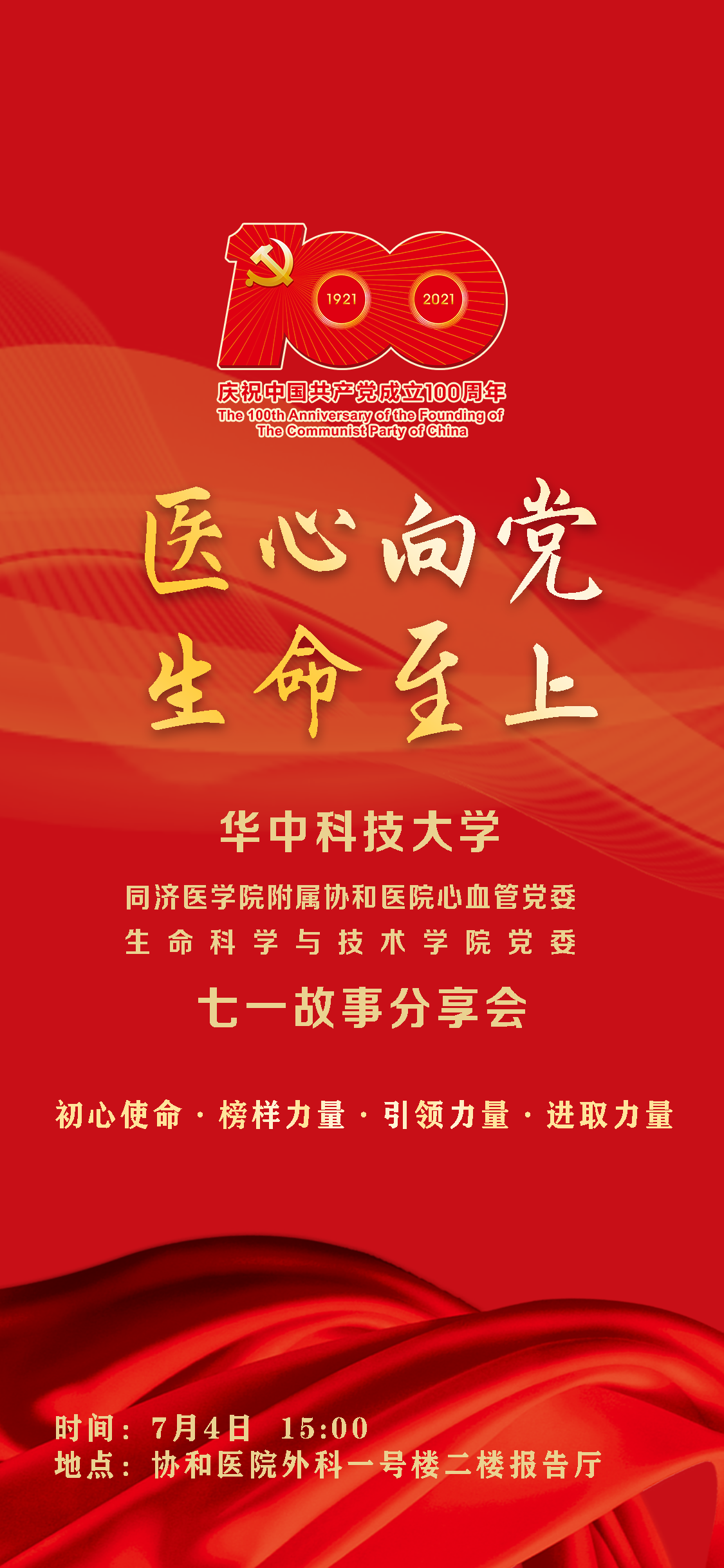 必威西汉姆联官网同济医公司附属协和医院心血管党委与公司党委将于7月4日15:00举行“医心向党 生命至上”七一故事分享会。