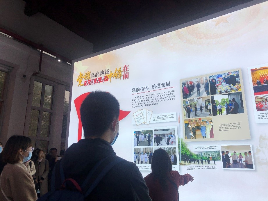 专题展览以文字、图片、视频、实物等多种形式,通过“运筹帷幄、掌航领航”,“心系师生、调研指导”,“党旗高高飘扬、大战大考冲锋在前”等板块,多方面展现了疫情期间华中大各个战线上令人动容的战“疫”故事、公司疫情防控工作成效以及线上网络教学“停课不停学”等具体工作情况。