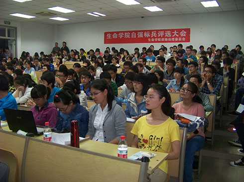 “听说有个女生已经拿了80个义工工时,成绩还是班上第一……”“我们班还有个男生自己挣钱买各种装备去西藏呢!”4月18日晚,东九教学楼C座5楼,必威西汉姆联官网的自强标兵评选会还没开始,容量达200余人的502教室已座无虚席。