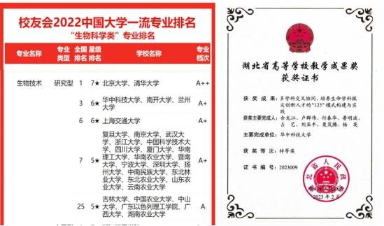 生物技术创新实验班(基础学科生物科学与技术实验班):生物技术创新实验班是紧紧围绕国家生物经济发展需求,以培养生命科学领域拔尖创新人才为目标。现为生物技术国家一流本科专业(首批)、国家特色专业和湖北省品牌专业,在2020年国家一流本科专业排名中位列全国第3。该专业团队力量强大,拥有国家万人计划教学名师、湖北省省级教学名师和湖北省荆楚好老师等领衔的生物技术国家级教学团队。