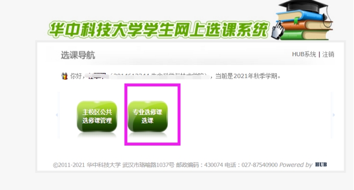 建议用电脑登录,使用360极速浏览器,系统接智慧华中大统一身份认证,输入账号及密码,进行登录,进入选课模块 选择“专业选修课选课”   按钮 ,即可按照 “课程”选课。