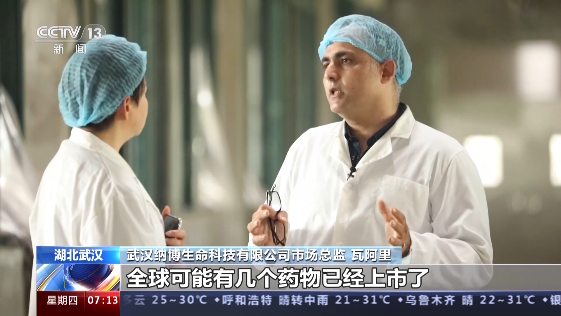 武汉纳博生命科技有限公司市场总监 瓦阿里:现在纳米抗体,全球可能有几个药物已经上市了,可以用了,但是有几十个药物现在还在临床三期阶段,所以就是说明什么,保护人类的健康,目前看到的这个是未来。