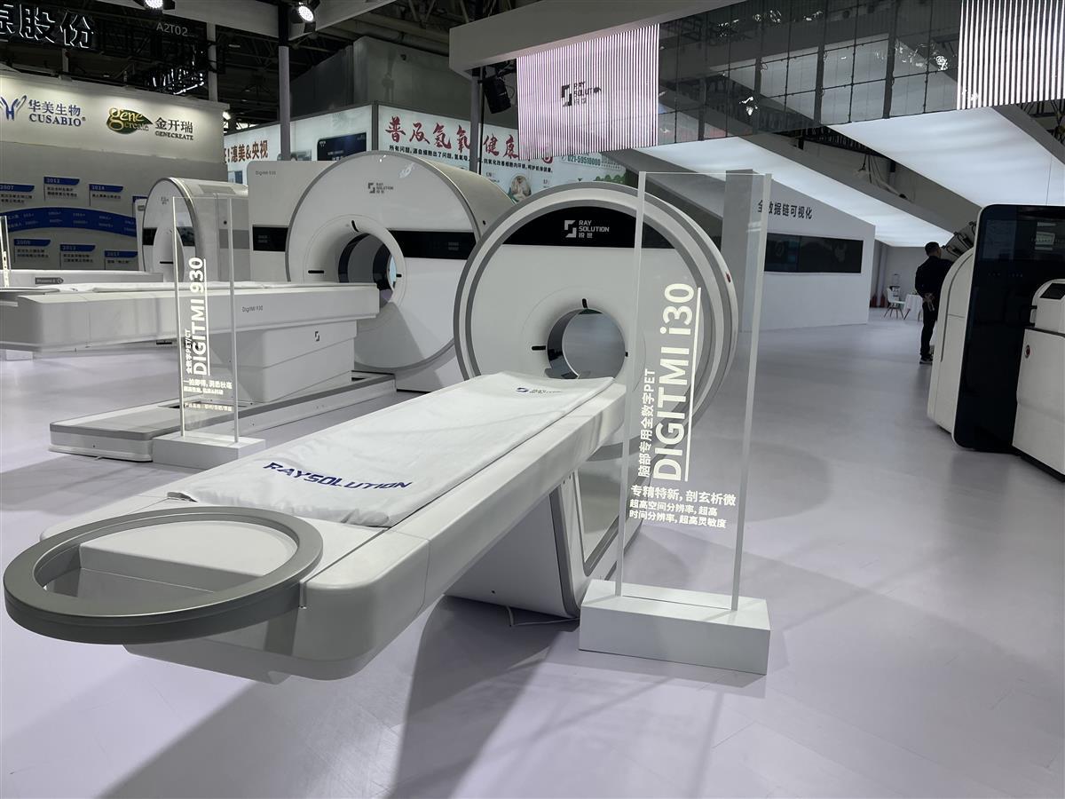 记者在锐世医疗的展馆中看到,由团队自主研发的新一代全数字PET/CT DigitMI 930亮相其中。今年1月,这台设备通过了中国医疗器械注册认证,正式获准进入市场。相关指标显示,DigitMI 930能在20秒内完成单个床位的扫描成像,全身扫描仅需80秒,单床位成像速度为当前全球第一。