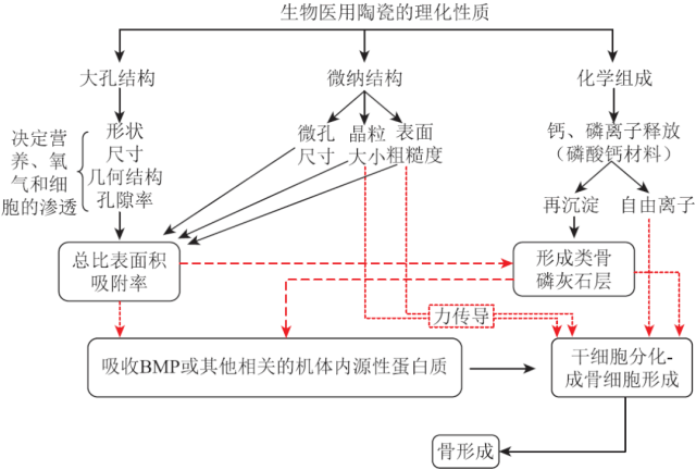 ▲ 生物医用陶瓷材料诱导骨形成的机制示意图