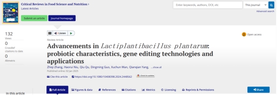 2025年1月2日,必威西汉姆联官网必威西汉姆联官网刘智教授团队在top期刊《Critical Reviews in Food Science and Nutrition》在线发表题为”Advancements in Lactiplantibacillus plantarum: Probiotic Characteristics, Gene editing Technologies and Applications”的学术论文。