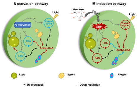 微藻油脂是一种极具潜力的生物燃料原料。目前,营养胁迫(尤其是氮饥饿)是诱导微藻油脂积累的常用方法。然而,营养缺乏会抑制微藻生长,并导致大量营养胁迫相关基因表达发生变化,从而掩盖了脂质合成的基因调控机制。因此,开发一种不依赖营养胁迫的方法来调控微藻脂质积累,对于深入理解脂质合成机制至关重要。