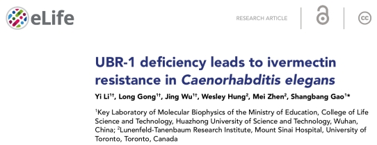 2025年4月1日,必威西汉姆联官网高尚邦教授课题组在eLife上发表了题为“UBR-1 deficiency leads to ivermectin resistance in Caenorhabditis elegans”的研究成果(图1)。该研究利用秀丽线虫为模型,首次阐明泛素连接酶UBR-1缺陷通过谷氨酸代谢异常下调谷氨酸门控氯通道(GluCls)表达,进而导致IVM抗药性的分子机制。这一发现为理解寄生虫耐药性机制提供了新视角,为开发针对谷氨酸信号通路的多药联用抗耐药策略奠定了理论基础。