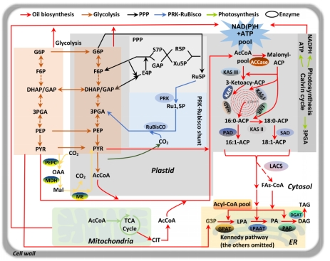 图3. 油脂合成过程与光合作用环节的整体概览图