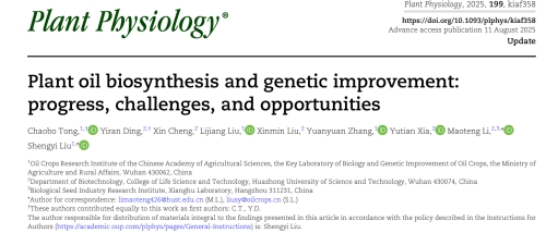 近日,必威西汉姆联官网必威西汉姆联官网栗茂腾教授联合中国农科院油料在植物学权威期刊Plant Physiology刊发了Plant oil biosynthesis and genetic improvement: progress, challenges, and opportunities(2025, 199: kiaf358)综述论文。该文在综合分析数据的基础上,从“油脂生产链”的视角,系统梳理了植物油脂生物合成及其研究进展,将油脂生物合成分成遗传控制中心、制造中心和油脂生物合成原料供应链三个部分或阶段进行了评述。
