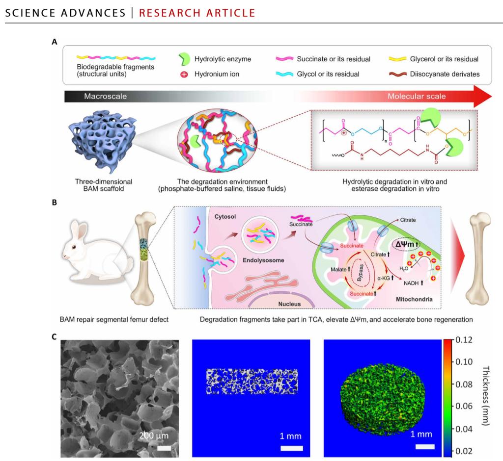 (通讯员 杜莹莹)3月27日,Science旗下著名期刊Science Advances《科学进展》以封面亮点报道了公司张胜民教授团队的原创发现:Bioenergetic-active materials enhance tissue regeneration by modulating cellular metabolic state,即生物能量活性材料通过调控细胞代谢状态促进组织再生。封面报道强调,该项发现展示了生物材料科学与再生医学新的地平线。