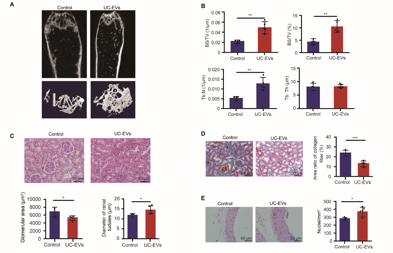 UC-EVs改善自然衰老小鼠骨骼、肾脏和血管等组织器官的退行性变