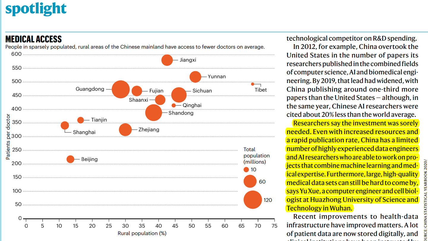 2021年10月6日,国际期刊《自然》发表题为“中国数据驱动的医疗保健变革之梦”(China’s data-driven dream to overhaul health care)的焦点文章,聚焦我国在人工智能与医疗健康相结合的前沿多学科交叉研究现状。公司薛宇教授接受《自然》杂志记者Sarah O’Meara的采访(全文链接:https://www.nature.com/articles/d41586-021-02694-1)。
