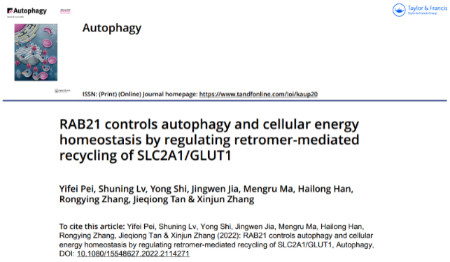 2022年8月21日,必威西汉姆联官网张新军教授团队在《Autophagy》杂志在线发表题为“RAB21 controls autophagy and cellular energy homeostasis by regulating retromer-mediated recycling of SLC2A1/GLUT1”的最新研究成果。该研究发现RAB21参与调控retromer介导的葡萄糖受体SLC2A1的逆向回膜转运,对维持细胞葡萄糖稳态及细胞自噬水平具有重要作用。