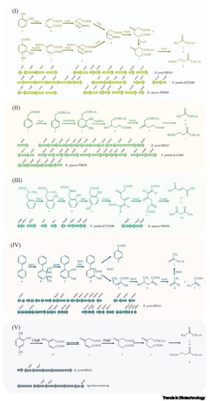 图2. 细菌降解木质素的中心代谢途径和关键基因
