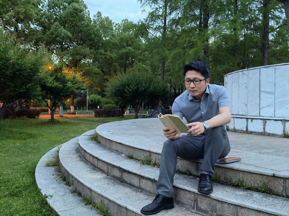 在校园内和校园周边的咖啡店、花园或草地,每一个暖阳的日子或是细雨绵绵的周末,你都可能看到谢尚县老师在角落的座位手不释卷,如此雅致惹人敬佩。暖黄的灯光氤氲着哲思,给予的是知识的温暖。他端坐着,手执一卷,旁若无人。