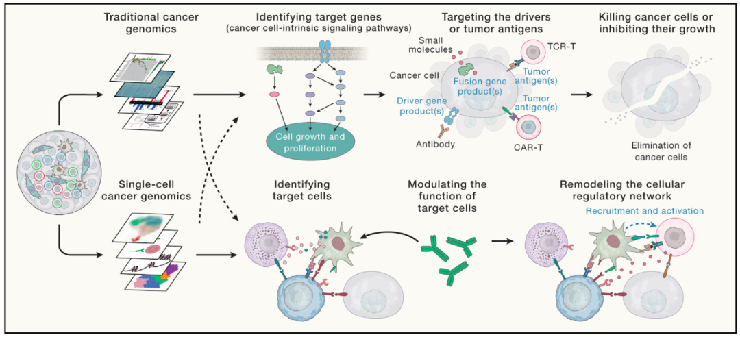 的综述文章,全面总结了肿瘤基因组学的发展历程以及其对理解肿瘤驱动机制与异质性、促进个体化精准肿瘤治疗的重要贡献,并强调了目前肿瘤基因组学研究视野的转化,即从对癌细胞本身特性的关注提升到对整个肿瘤“生态系统”的研究,最后讨论了肿瘤基因组学未来在推动基础肿瘤生物学理解与临床转化应用方面潜在的发展方向。