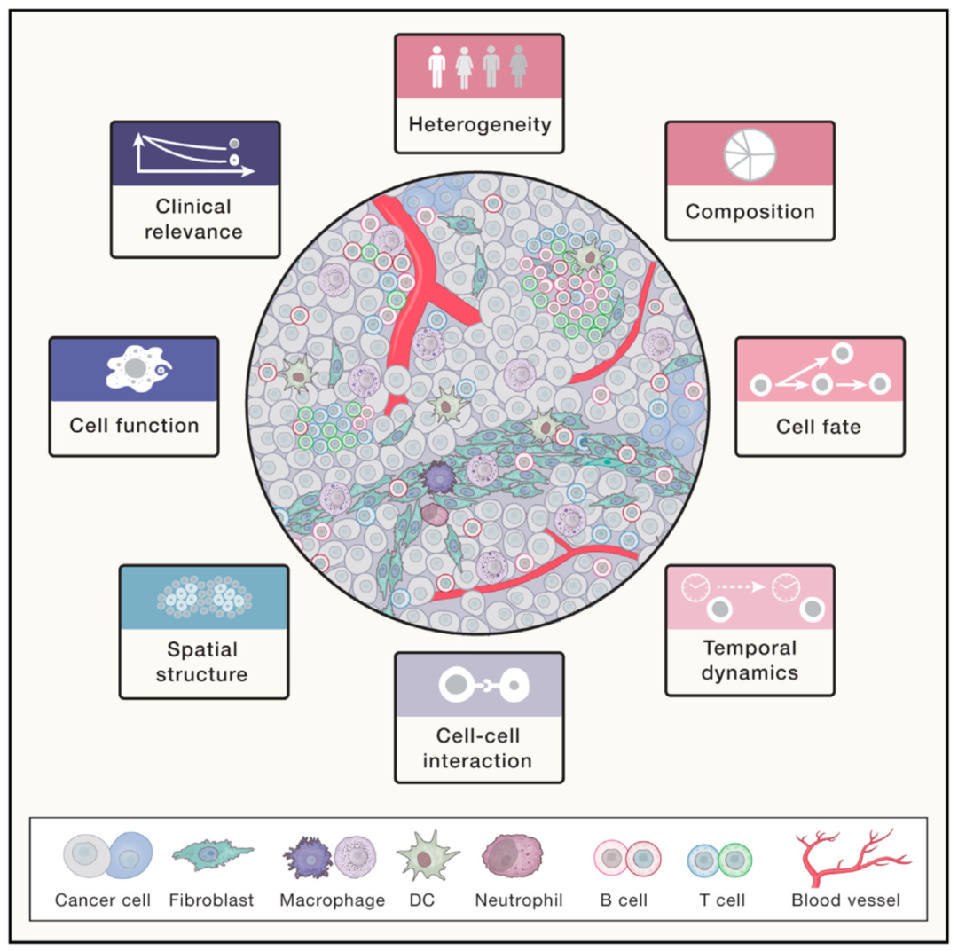 当前,肿瘤基因组学仍处在迅猛发展之中。随着单细胞测序样本的累积,大规模整合患者数据并对其肿瘤微环境分型成为可能,有望帮助揭示新的精准免疫治疗方案。同时,空间组学、单细胞多组学、以及结合CRISPR功能干扰的单细胞测序技术在逐渐普及,这些将进一步丰富我们对肿瘤微环境组成与功能机制的理解。未来几年内,肿瘤基因组学有望在基础肿瘤生物学与临床转化应用的多个方面产生重要的突破性成果。例如,在HCA、HTAN等国际合作项目的支持下,我们将逐渐掌握人类肿瘤的完整组成成分以及各个成分的相互作用关系,全面理解肿瘤发展的时空动态变化规律;与此同时,我们也将能够系统性阐述癌症发生的早期因果机制,准确定位肿瘤恶性转化的时间点,并指出不同肿瘤微环境类型产生的动态过程与影响因素,为肿瘤的精准治疗提供依据;进一步,结合液体活检技术对肿瘤微环境状态的无创探测,基因组学方法将助力癌症的早期发现与治疗。