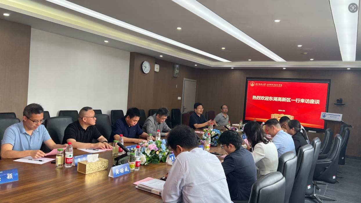 刘笔锋代表公司对东湖高新区一行来访表示热烈欢迎,然后从公司整体发展情况出发,对公司在团队建设、人才培养、科学研究、社会服务、团队队伍建设、国际交流与合作等方面的情况进行了详细介绍。