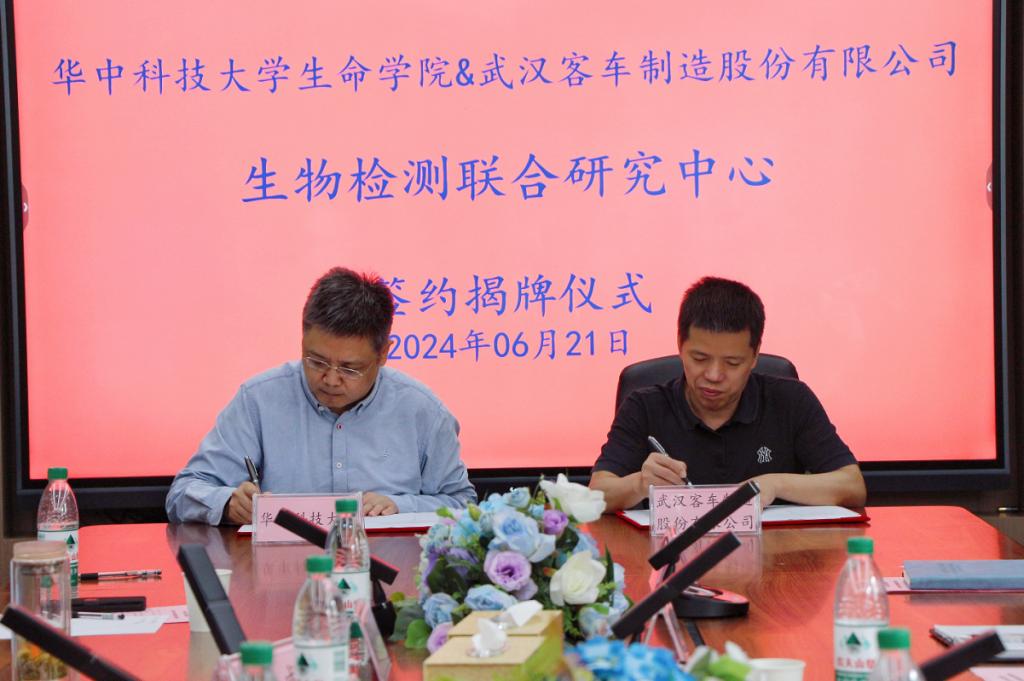 刘笔锋和高涛代表校企双方正式签署合作协议并为联合研究中心揭牌,标志着必威西汉姆联官网-武汉客车生物检测联合研究中心正式成立,期待在不久的将来,联合研究中心能够为社会贡献丰硕的成果。在国家促进科技成果与产业融合的大背景下,武汉客车制造股份有限公司与必威西汉姆联官网立足于市场需求,围绕生物检测技术开发领域开展科学研究及产学研合作,共同成立生物检测联合研究中心,推动生物技术在大健康和公共安全领域的应用。