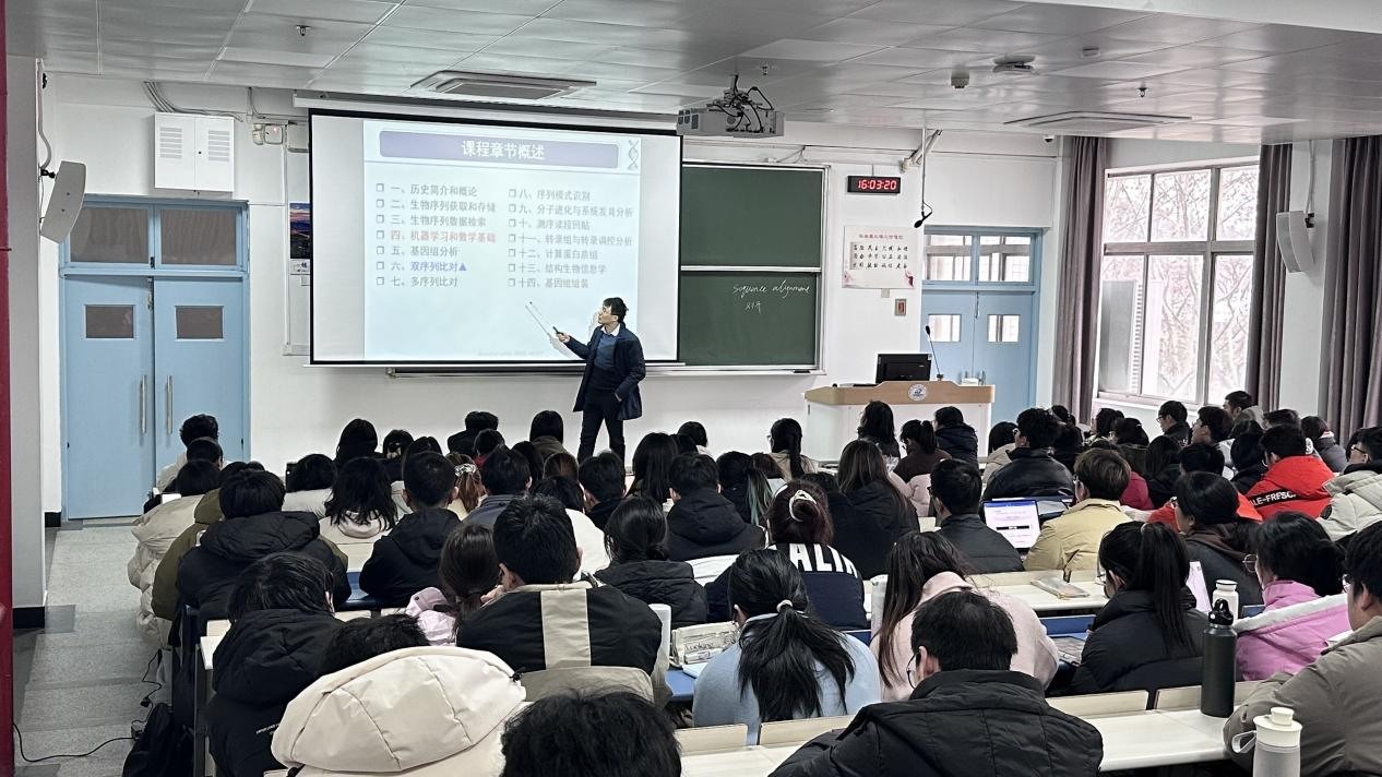 生物信息系薛宇教授在认真准备后,为同学们带来了《生物信息学》的第一课。他结合近期热门的人工智能大模型DeepSeek,用生动的案例和通俗的语言,为同学们揭开大模型的神秘面纱。从神经网络的基本原理到主流大模型的架构设计,薛教授的讲解深入浅出,激发同学们对生物信息学的兴趣与热情。