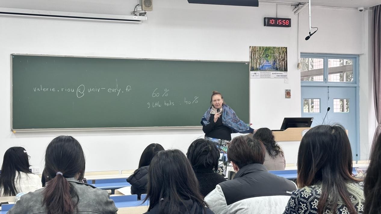法方教师Valérle,Anne-Mare RIOU带来《科技实用英语》课程。她以独特的幽默感和丰富的教学经验,将科技英语与实用场景紧密结合,让同学们在轻松的氛围中掌握专业词汇和表达技巧。