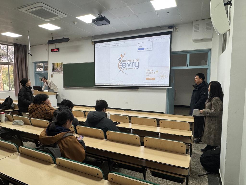 副经理陈军老师来到东十二306、114、103教室《法语学习》《科学方法论》《基因组学》课堂