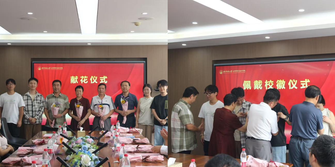 会上,研究生新生代表为耿建萍、余龙江、何光源、杨广笑四位资深教师代表献花,表达了对各位老师的感恩与敬意。四位老师为同学们佩戴校徽,传递了对同学们的认同和殷切希望。