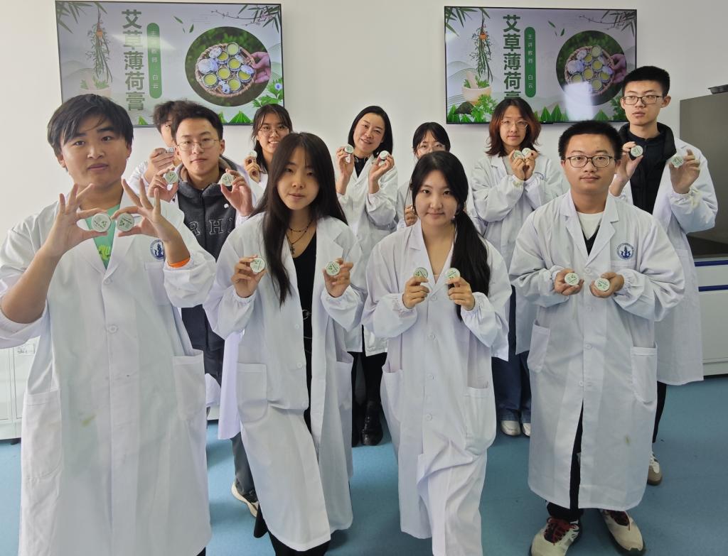 金秋十月,校园丹桂飘香之时,课程组特别开设“桂香工坊&”。同学们亲手采摘新鲜桂花,通过溶剂萃取法获取花香精油,再将其与天然蜂蜡融合制成便携香膏。更有创意的是,他们将桂花精油与中药材粉末混合,塑形后串成兼具装饰与养生功能的合香珠。这些承载着秋日记忆的作品,成为连接校园文化与个人情感的独特载体。