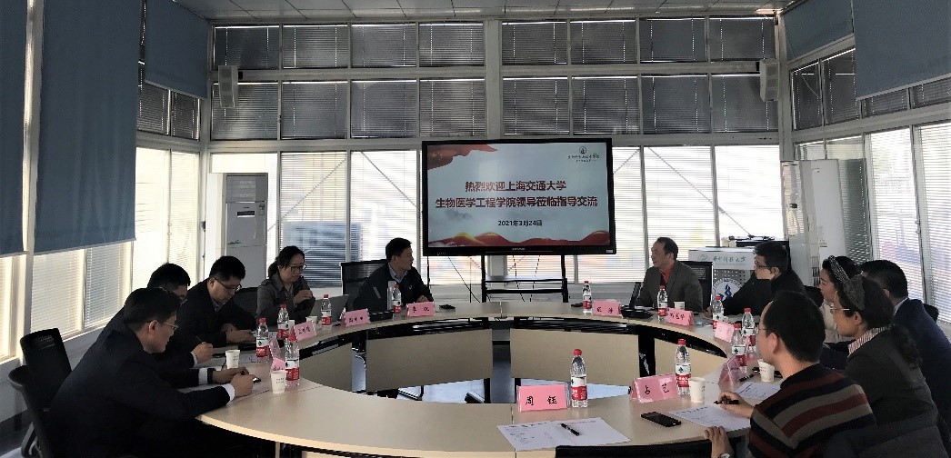 3月24日,上海交通老员工物医学工程公司党委书记季波、党委副书记周申申、孟祥琦以及副经理白景峰、孙建奇一行来访公司,就党建工作、人才培养等方面进行座谈交流。公司党委书记张涛、常务副经理刘笔锋、党委副书记孔姝、副书记兼副经理卢群伟、教工党支部书记杨光、学工组长占艺、组织干事周钰参加座谈会,张涛书记主持。