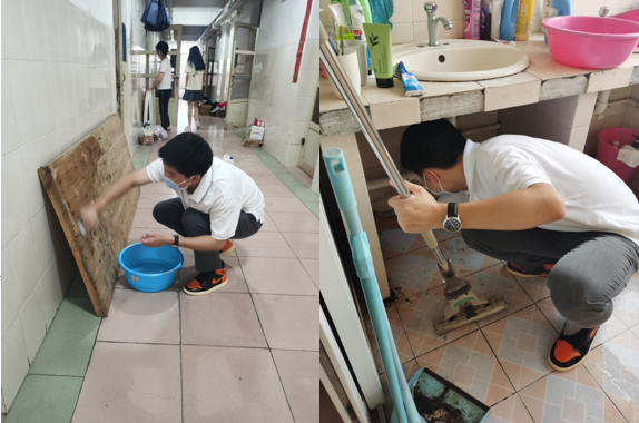 大部分宿舍清扫工作尚不繁重,生科1904班王晓娟同学寝室位于1楼北面,来到寝室后她立即开展大扫除,独立将寝室收拾整洁。辅导员反馈,这个寝室虽然在一楼靠北,但员工平时注意卫生清洁,开学时寝室状况依然良好,无大面积发霉等情况。极个别宿舍由于水管破裂等问题导致床板受潮严重等问题,辅导员老师已连同后勤部门协商解决,帮助员工及时清理受潮床板,清扫受潮严重的下水道等。